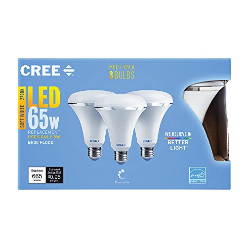 Cree SBR30-06527FLFD-12DE26-1-13 Led 65W Replacement BR30 Soft White (2700K) Dimmable Flood Light Bulb (3-Pack),