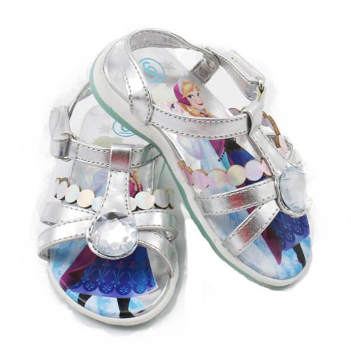 FROZEN ELSA ANNA GIRLS TODDLER SILVER RHIMSTONE SANDAL SHOES VARIOUS SIZE (8)