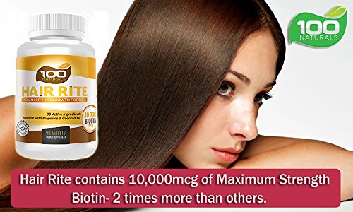 ★ Maximum Strength Biotin: Hair Rite has 10000 mcg which is 2 times more than other hair growth vitamin supplement.