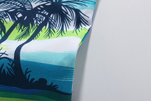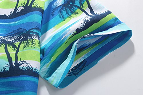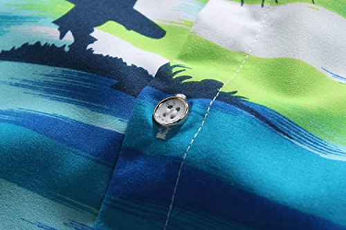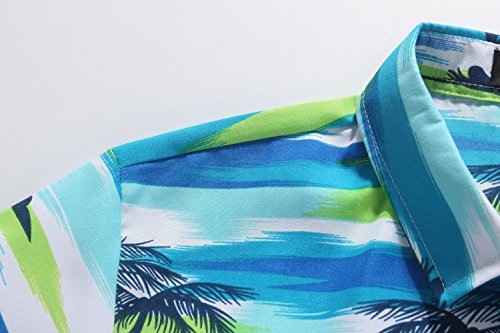 SSLR Men's Hawaiian Shirt With Coconut Tree Print Aloha Holiday (Large, Blue)
