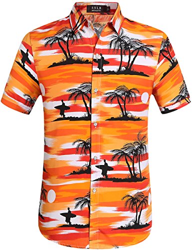 SSLR Men's Hawaiian Shirt With Coconut Tree Print Aloha Holiday (X-Large, Orange)