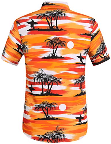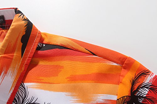 SSLR Men's Hawaiian Shirt With Coconut Tree Print Aloha Holiday (3X-Large, Orange)