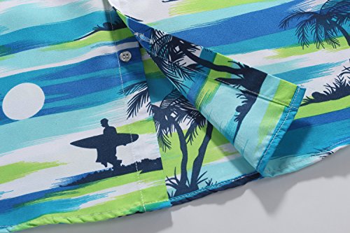 SSLR Men's Hawaiian Shirt With Coconut Tree Print Aloha Holiday (Small, Blue)