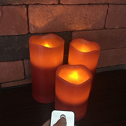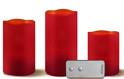 Candle Flameless LED with Remote pack of 3(34,35,36) Cinnamon Smell (Red)