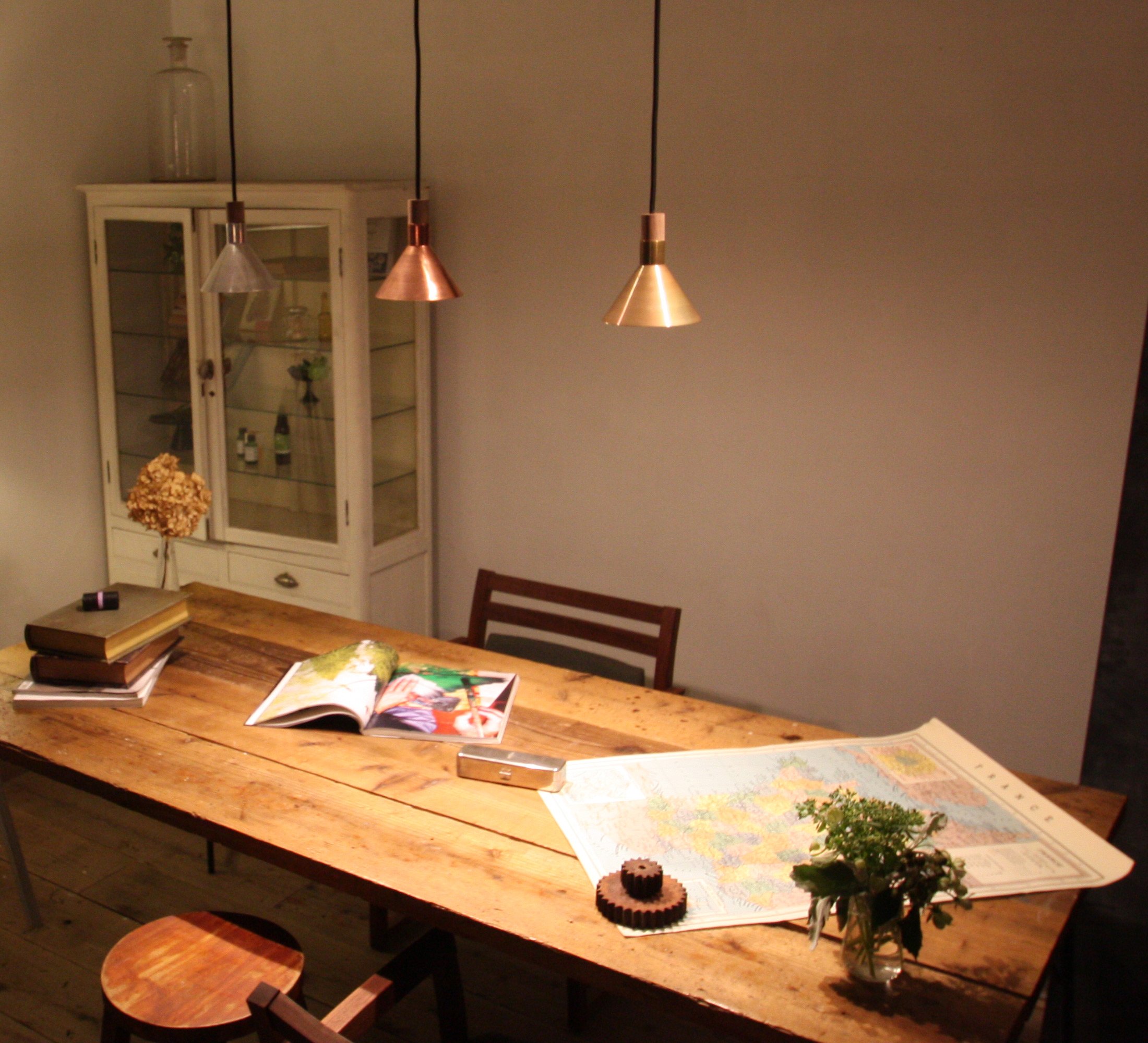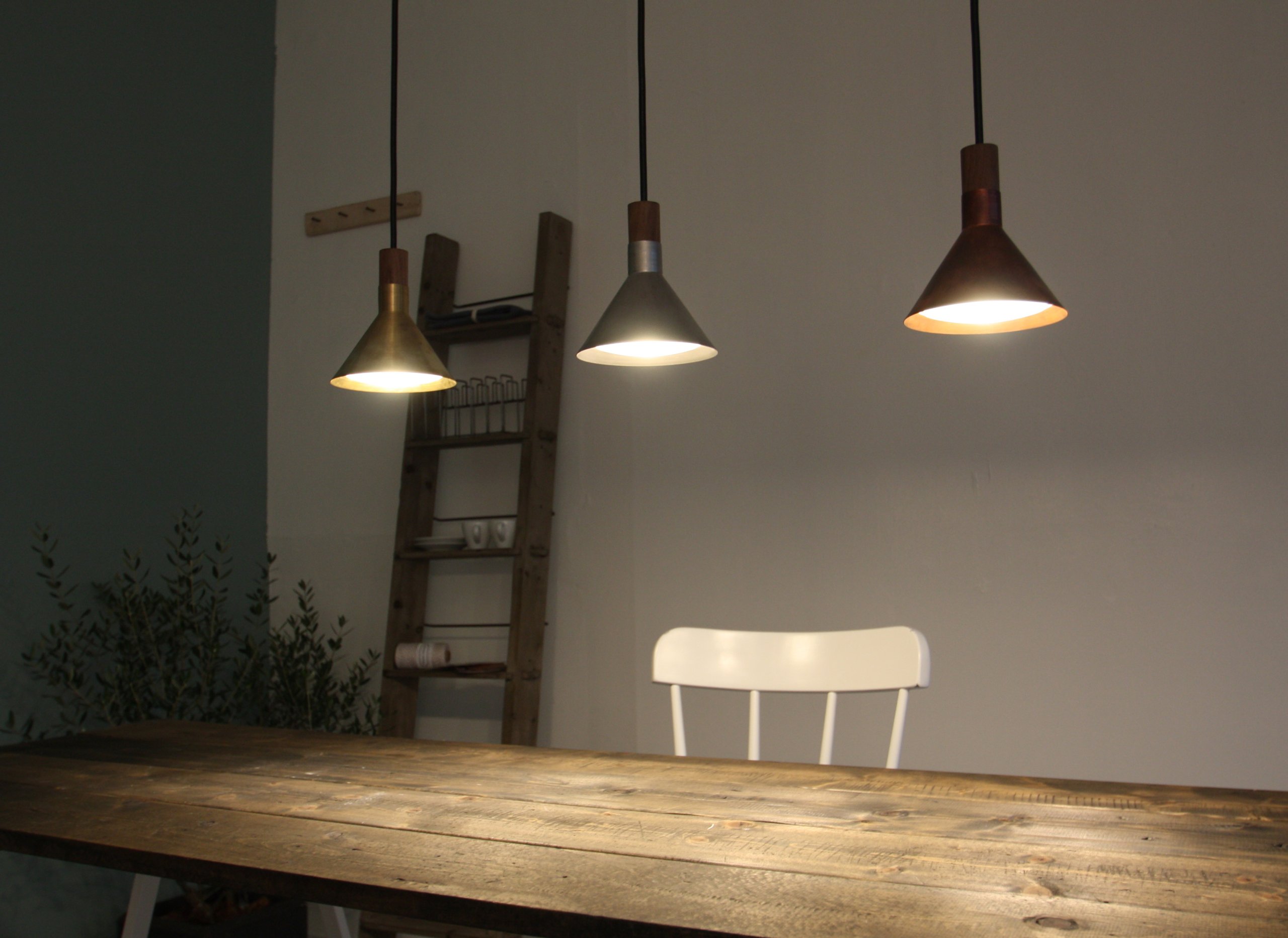 ● Combination of retro shade and LED light using metal with presence.