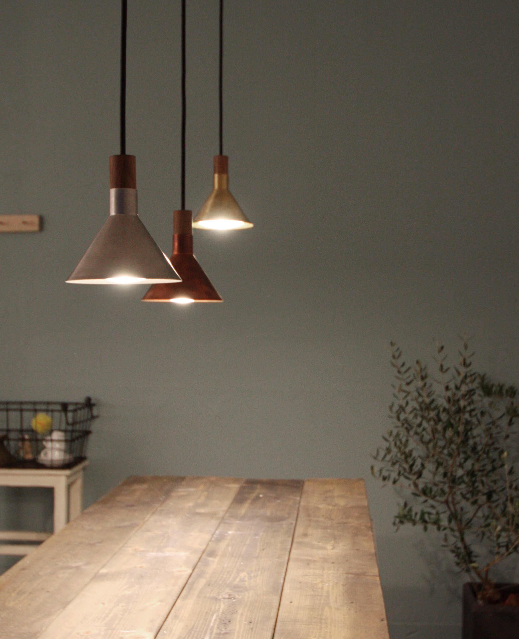 Shade material is brass and walnut