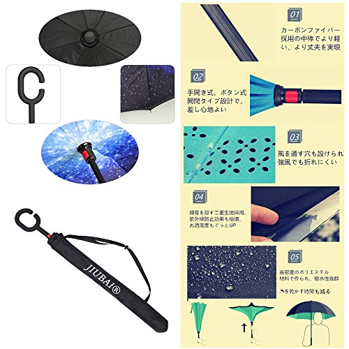 -. Title : JIUBAI® 逆折り式傘 長傘 逆さ傘 UVカット 晴雨兼用 C型手元 耐風 撥水加工 ビジネス用 車用 傘カバー付
