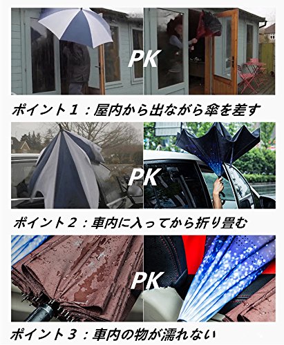 -. Feature : ★JIUBAI全天候型万能傘です。【商標登録第5953893号】 / ★従来の傘とは違う点:◆車のドアの隙間から楽々開閉。◆二重生地。◆畳むと濡れた部分が内側に。◆手首にかけるだけ両手自由に持ち歩ける便利なC型持ち手。◆自立できる。 / ★服、床が濡れる悩みを解決した画期的な逆さ傘です。 / ★雨でも暑くてもしっかりとカバーしてくれます。海辺の遊びやハイキング、スポーツ観戦、ゴルフのプレーの時にお勧めです。 / ★強度が違う8本フレーム!グラスファイバーだから弾力性あるので強度が強く、強風でも折れ曲がりにくく、長持ち!傘を差した姿も格好いい!あなたためのアイテム!