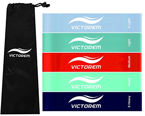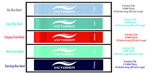 Maximize your gym time and workout potential by increasing muscle mobility and strength, thanks to Victorem's new 5 piece resistance band set. Any personal trainer or physical therapist knows that one of the best ways to prevent or rehab from injuries is by taking the time to strengthen the weakest points and increase mobility in the muscles that are lacking this. Whether you are on a CrossFit kick or trying to perform better in your yoga workouts, these bands were made to assist you. Designed with 5 levels of resistance to allow you to increase resistance at the pace suits you best, as different exercises call for vastly differing levels of resistance. That's why you need the revolutionary new Victorem Mini Loop Resistance Bands designed specifically for building strength and mobility. Durable, Versatile and Easy to Use Find the exact resistance band for each exercise or stretch you perform, as our mini loop bands have a circumference of 20 inches, designed to be the perfect length for everyone. Simply loop bands around ankles, feet, arms, knees, or other body parts and begin your strength and mobility workout or warmup. Lightweight and compact, you'll never leave home without them because they fit right inside your gym bag without taking up much space. Product Details: - High-Durability Design (Mini Loop Bands:.4, .6, .8, 1, 1.2mm thick