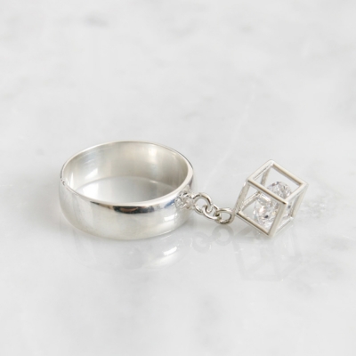 볼륨감 있는 링반지에 스퀘어 팬던트를 달아준 유니크한 반지입니다. 속이 빈 스퀘어 팬던트안에 큼지막한 큐빅지르코니아를 넣어주었습니다. 달랑달랑 움직이는 큐빅이 떨어질듯 떨어지지 않는 유니크한 디자인입니다. 3호부터 20호까지 다양한 사이즈로 제작되어 선물용으로 좋답니다.