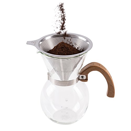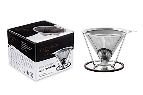 Essence Stainless Steel Pour Over Coffee Maker - 4 Cups - | Highest Quality Dripper with Stand | Reusable Double Layer Cone
