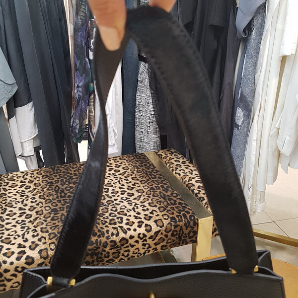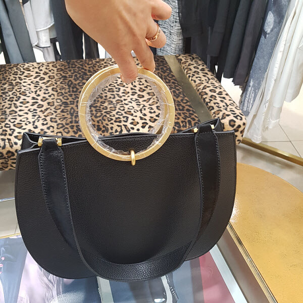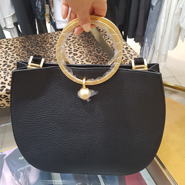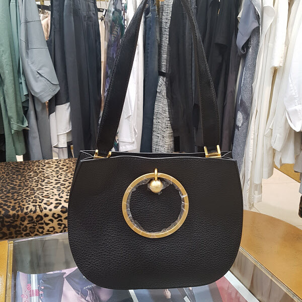 라운드형의 숄드백으로 금장장식이 포인트이며 보스톤백으로도 들수가있어 다양하게 활용하기 좋은 스타일입니다.끈은 송치로 되어있어 고급스런 분위기도 연출됩니다.