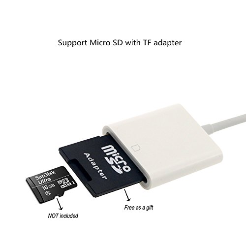 COMPATIBILITYOur smartphone SD card camera reader is compatible with SD / SDHC card memory cards. Micro SD (TF) is supported when used with an adapter to fit the slot.