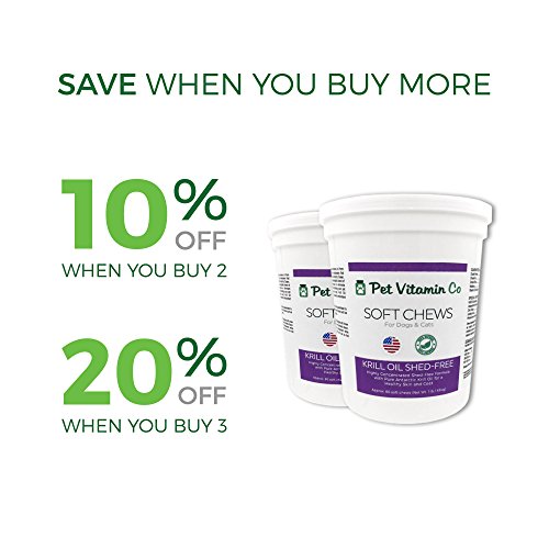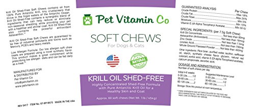 🐶 ONLY THE BEST FOR YOUR DOG - Pet Vitamin Co only sources the best quality for your furry friends. Our Shed Free Krill Oil Soft Chews for Pets are Richer in Omega 3 Fatty Acids than Fish Oil. Krill oil offers all the best antioxidants not found in fish or cod liver oil.