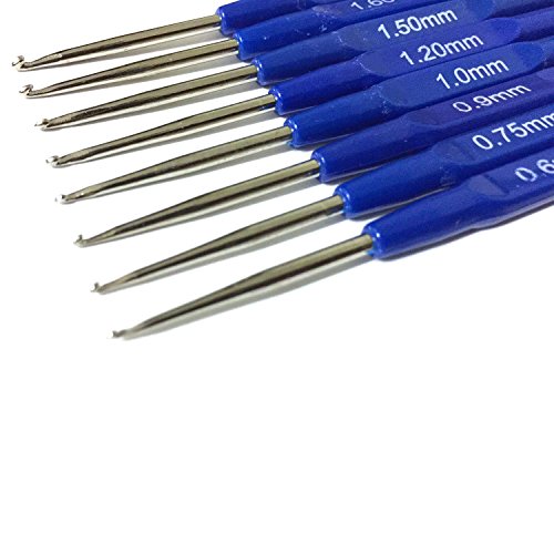 T-UPPERMOST 8Pcs/Set Crochet Hooks Plastic Knitting Needles Loom Tool Sewing Patchwork Craft Needlework Mixed Metallic Blue Handle Kit