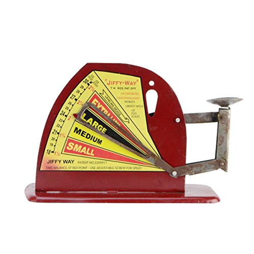 Studio : TG LLC Publisher : TG LLC Product Description Add a rustic touch to your farmhouse decor with this Jiffy Way egg scale. Weighing eggs manually was part of farming life to ensure customer received the right sized eggs. This metal, vintage-style poultry scale is great for weighing anything fairly lightweight. Featuring four weight categories: small, medium, large, and extra large, this charming scale can measure individual eggs and ounces per dozen. Jiffy Way was once the world's largest manufacturer of egg scales and this vintage-looking scale was made to replicate that with its worn, rustic appearance. Measuring approximately 8" long, 6" wide, and 3" tall, this charming scale makes a great kitchen decor accessory. Ships brand new in manufacturer's packaging with our 100% customer satisfaction guarantee. 0