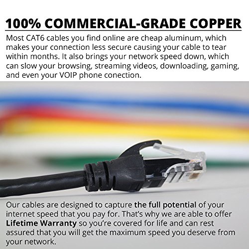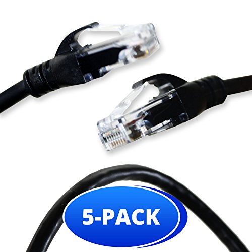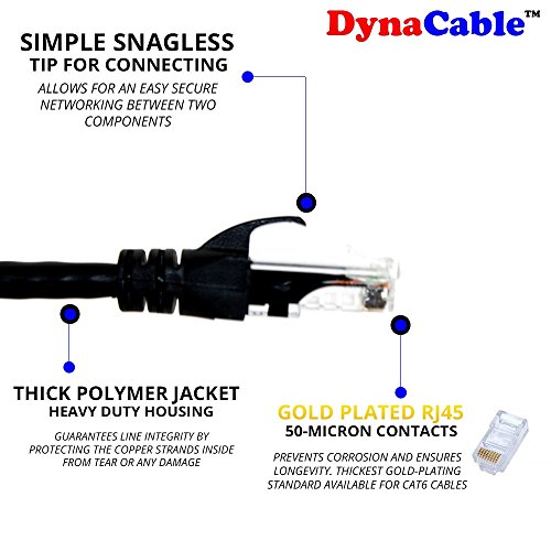 Dynacable Cat6 Snagless Ethernet Patch Cord Cable RJ45, 5 Feet / 5 Pack, Black – 100% Copper - Lifetime Performance Warranty