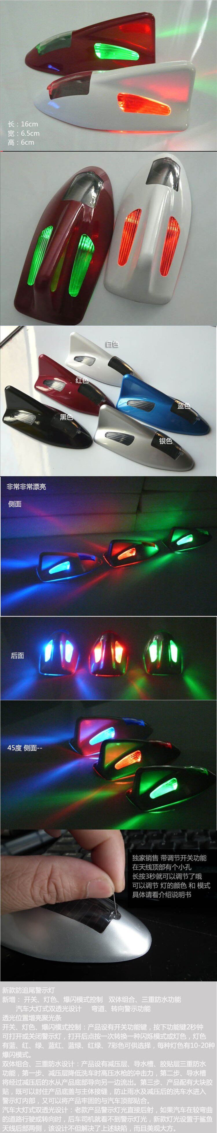 In the evening, our car taillights are often bright red light, for fatigue drivingor driving for a long time after the car drivers, have a habit of numbnesson the color, does not cause their attention; or because of the oppositeautomobile light irradiation, and this is not easy to find us in front of the vehicle it is very easy cause, rear end accidents. So, we added the LED lights flashing in automotive shark fin.