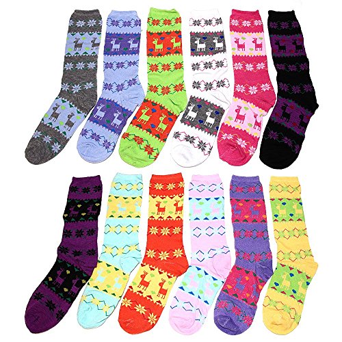 -. Feature : 12 Pairs Assorted Color Crew Socks / 80% Cotton / 20% Polyester / Size 9-11 Fit Shoe Size 4-10 / Machine Wash Warm / Tumble Dry Low