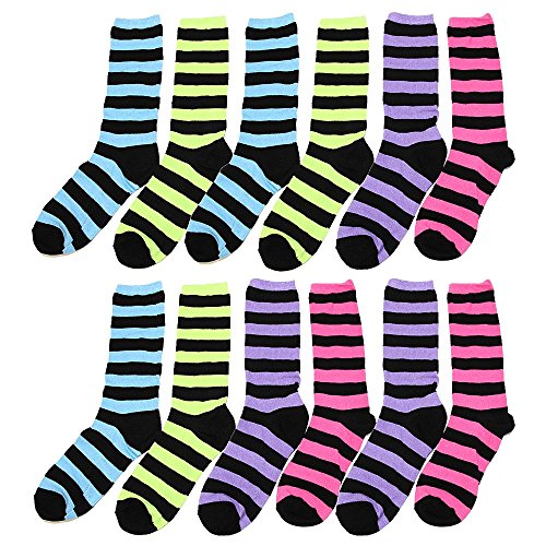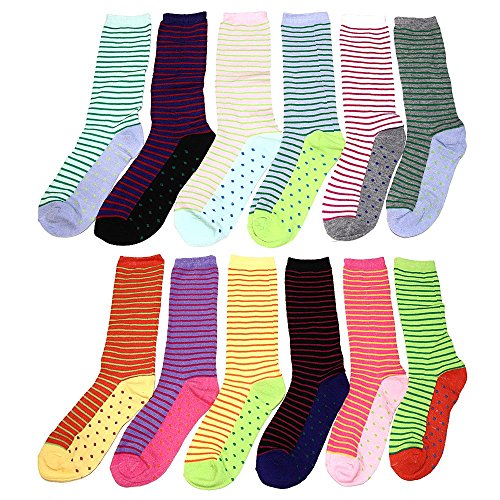 -. Title : 12 Pairs Women's Crew Socks Assorted Colors Size 9-11 Fit Shoe Size 4-10