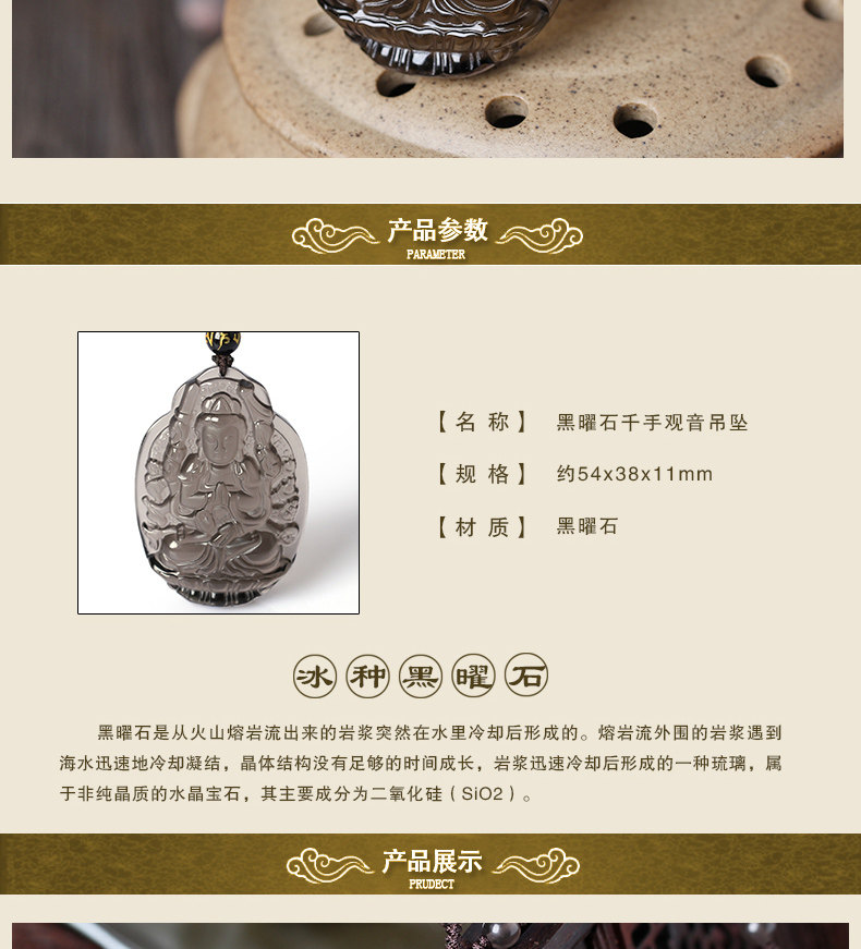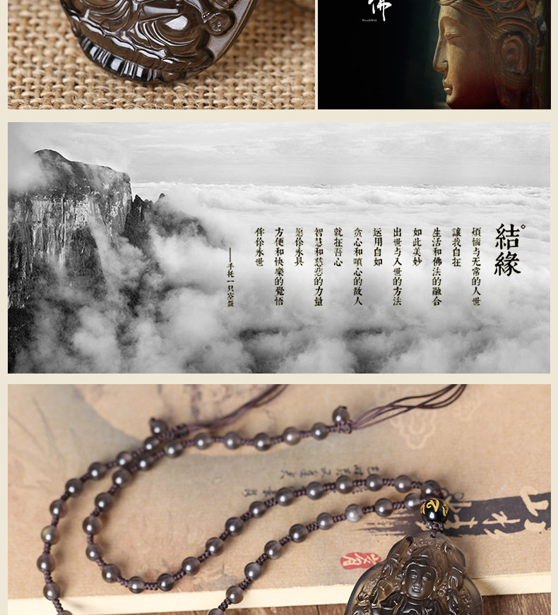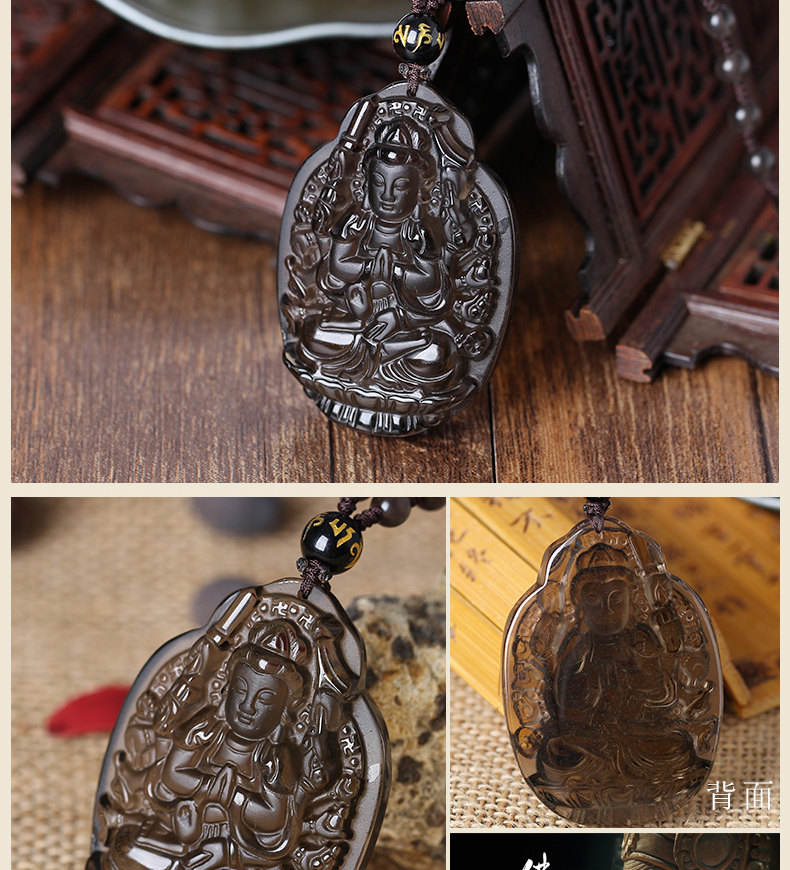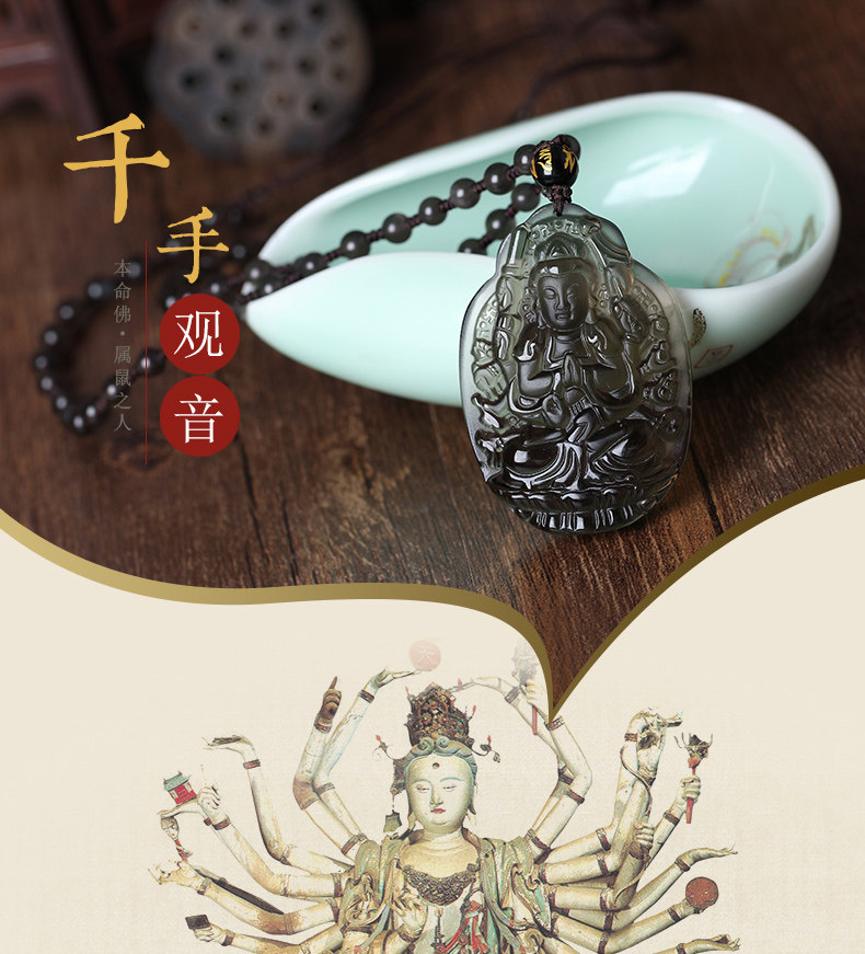 开光冰种黑曜石千手观音菩萨十二生肖鼠本命佛守护神吊坠