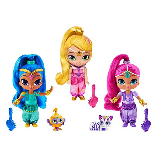 -. Feature : Shine features a soft ponytail little ones will love to brush and style / Shimmer is dressed in her satin genie outfit, matching shoes and golden bracelets / Leah features a soft ponytail little ones will love to brush and style / Includes 2 pets of Shimmer and Shine, Tala and Nahal / Comes with 3 Brushes for hair styling