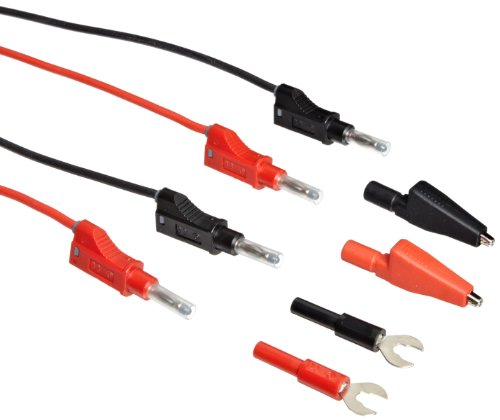 - Feature : Kit contains: (2) lead 4mm stkrshth p-p silicone 0.75, 100cm: (1) black, (1) red, (2) adapter 6mm spade 4mm-jack: (1) black, (1) red, (2) medium alligator clip with 4mm jack: (1) black, (1) red / Basic test lead accessory kit provides the necessary cables and adapters / Provides effectively begin using your bench power supply / Basic connector grade / 10 A Current maximum