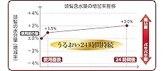 軽く湿らせた髪をヘアアイロンでストレートにし、髪の毛に含まれる水分量を24時間計測した実験データです。マジックシャインVSS-9500を使うと髪に保湿を与え、しかも24時間キープします。
