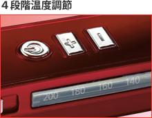 4段階の温度調節機能で、200/180/160/140℃の高温設定ができます。自動電源OFF機能付き。