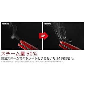 約200℃の高温設定とスチーム量が50%アップしたので、高温スチームでストレートも保湿も持続します。(※メーカー従来品 VSS-9200)