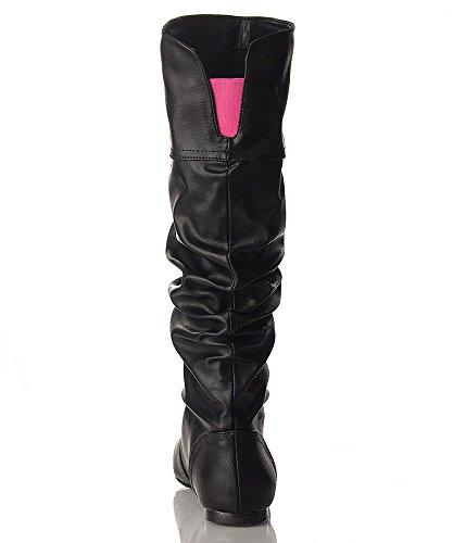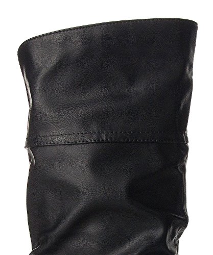 -. Title : Qupid Women's Neo144 Leatherette Basic Slouchy Knee High Flat Boot