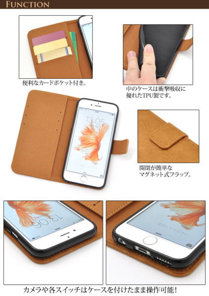 開閉はマグネット式で、使い勝手の良い手帳型です。