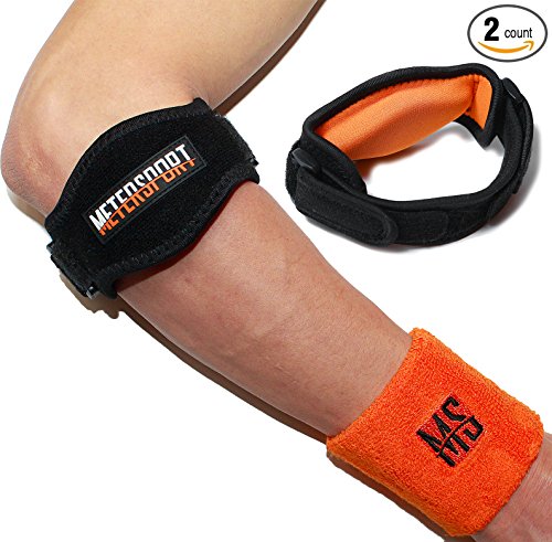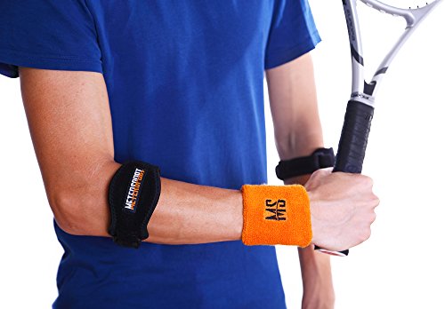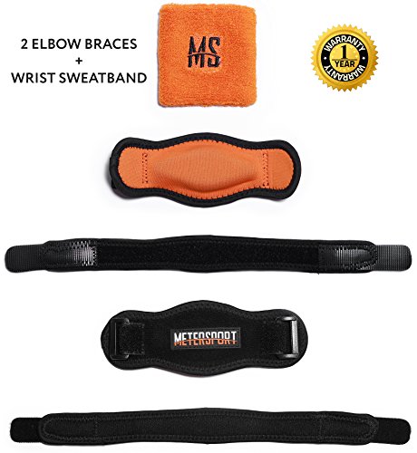 VALUE FOR MONEY: Take advantage of our BONUS items for a real value for money deal. Together with 2 elbow braces, you will receive a handy wrist sweatband in striking orange color and an e-book that contains tennis elbow exercises, treatment rules and all the tips you need on the most effective use of our tennis elbow strap. Be fully equipped with brace and wristband and know how to use them, in a single, greatly priced purchase