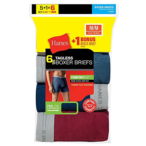 -. Brand : Hanes -. Department : mens -. Feature : Long-leg style. / Soft, stretchable Comfort Flex® waistband moves with you and keeps its shape wash after wash. / Available in a convenient 6-pack. / Tag-free for itch-free comfort. / Functional fly. -. ProductGroup : Apparel -. ProductTypeName : APPAREL -. Title : Hanes Men's TAGLESS Boxer Briefs with Comfort Flex Waistband 6-Pack, Assorted