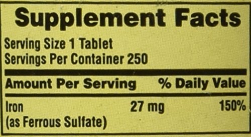 -. Binding : Health and Beauty -. Brand : Spring Valley -. EAN : 0784922584700 -. Feature : High Potency. / General Health. / Iron is necessary for healthy red blood cell formation. / Iron 27 mg (From Ferrous Sulfate, USP). / 250 Tablets. -. Label : Leiner Health Products, LLC. -. LegalDisclaimer : The statements in this page have not been evaluated by the Food and Drug Administration. This product is not intended to diagnose, treat, cure or prevent any disease. -. Manufacturer : Leiner Health Products, LLC. -. MPN : na -. PackageQuantity : 1 -. PartNumber : na -. ProductGroup : Health and Beauty -. ProductTypeName : HEALTH_PERSONAL_CARE -. Publisher : Leiner Health Products, LLC. -. Studio : Leiner Health Products, LLC. -. Title : Spring Valley - Iron 27 mg, 250 Tablets -. UPC : 784922584700