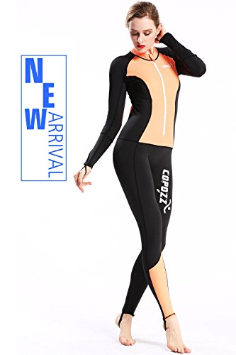 Wetsuit , Copozz Mens Womens Youth Wetsuit - Full Body UV Protection - For Diving Snorkeling Surfing Spearfishing Sport Skin (Black/Orange, Small for Women)