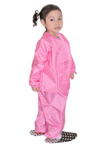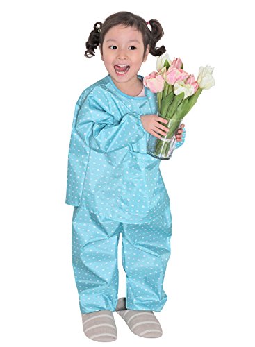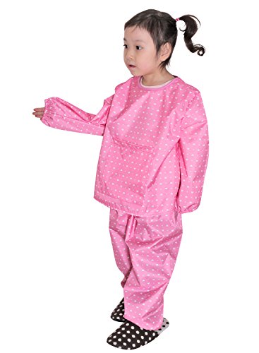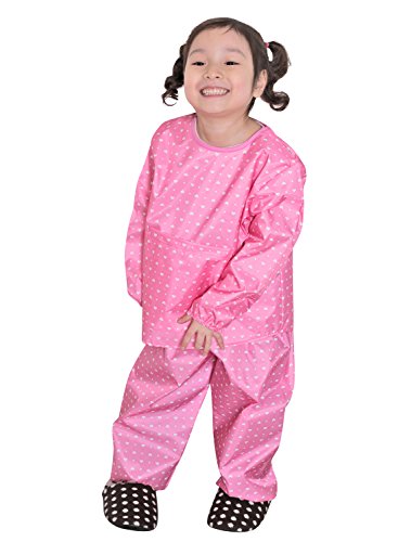This smock is perfect for messy projects. The smock are perfect for an all over protection and with the waterproof material you can rest easy that you little ones clothes will stay clean. Two-piece for the ultimate in clothing protection. Features a large catch all pocket for holding art supplies and catching spills. Shoulder velcro. Sized to fit 2 to 6 years of age.Feature