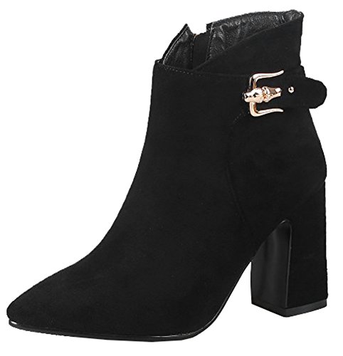 Binding : Apparel Product Description The fall is coming. And do you need to change the style of your shoes? If you have this idea, why not choose the ideal shoes in our shop? This pair of boots is for women, girls, young ladies and office workers. You will look sexy and chic when wearing them. The heels measure 3.3 inches. You will look slimmer and slender in their solid block heels. So you will not feel too tired when walking with them. The pair of shoes features ankle warp and inside zipper. The design of pointed toe will make you look cool. The sole is made of good rubber. You will feel comfortable in their soft bottom. They are of high quality and durable. Come on and take them away! 0