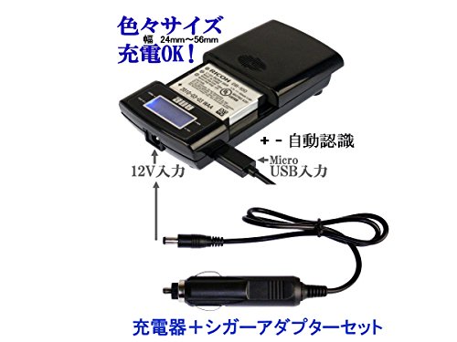 -. Feature :  【接続用ケーブル付】 充電用USB接続ケーブル黒(USB⇔MicroUSB) 1個付   【無線機 トランシーバー  デジカメ スマホ他 色々サイズ幅:24mm~56mm、色々VOLT 3.7V 3.8V 7.0-7.4V タイプOK 】この充電器一個あればとても便利、スマートフォン:デジタルカメラ:ナビGPS:モバイルルータ:ゲーム機等:ほとんどのバッテリーの充電に便利!※極一部充電不可 / 【色々なUSB出力電源の利用可能!】 USB出力付きの:リチウムイオンバッテリー:ノートパソコン:カーシガーソケットタイプ充電器:ゲーム機:電池付ソーラー充電器:乾電池タイプ充電器等:他色々のUSB出力に接続して使用!  【携帯に便利】 ◇ コンパクトですので通勤、旅行 出張時にも便利! ◇ 予備の電池パック充電に最適!  / リコー RICOH DB-100 DB-90 DB-80 DB-70 DB-65 DB-60 DB-43 LB-060 D-LI68 D-LI92 D-LI106 D-LI90P D-LI109 富士フイルム FUJIFILM NP-95 NP-48 NP-50 NP-45S NP-W126 キャノン Canon NB-13L NB-12L NB-11LH NB-11L NB-8L NB-6LH NB-5L NB-4L NB-10L NB-7L LP-E17 LP-E12 LP-E10 LP-E8 LP-E6 LP-E5 / ニコン Nikon EN-EL19 EN-EL12 EN-EL11 EN-EL10 EN-EL24 EN-EL21 EN-EL15 EN-EL14 EN-EL14a カシオ CASIO NP-160 NP-130A NP-130 NP-120 NP-110 NP-90 NP-80 ソニー SONY NP-BX1 NP-BN1 NP-BK1 NP-FG1 NP-BG1 NP-FD1 NP-FT1 NP-FW50 パナソニック Panasonic DMW-BCK7 DMW-BCL7 DMW-BCN10 DMW-BCM13 DMW-BCF10 DMW-BCG10 DMW-BCH7 DMW-BCJ13 DMW-BLA13 DMW-BLB13 DMW-BLC12 DMW-BLD10 DMW-BLE9 DMW-BLF19 DMW-BLG10 DMW-BLH7 DMW-BMB9 / ☆ 車の12Vシガーソケットからも接続充電可能 注意※24V不可。 注意※充電には別売のアクセサリー シガーソケットアザプターANE-USB-05-12V必用 検索→ ANE-USB-05-12V シガーアダプター