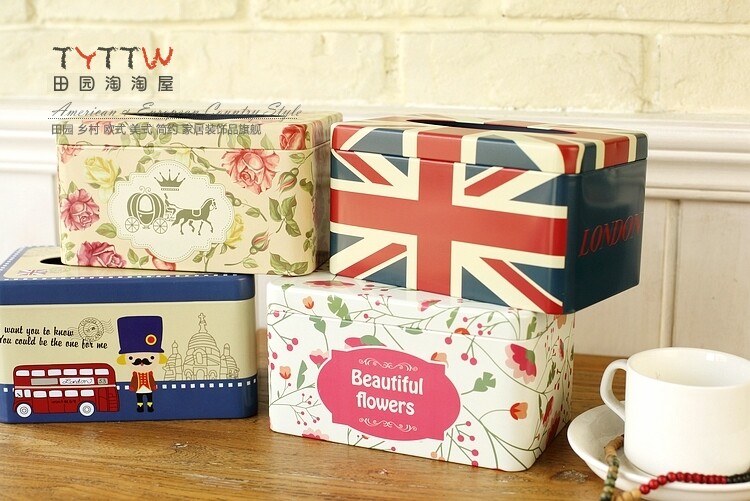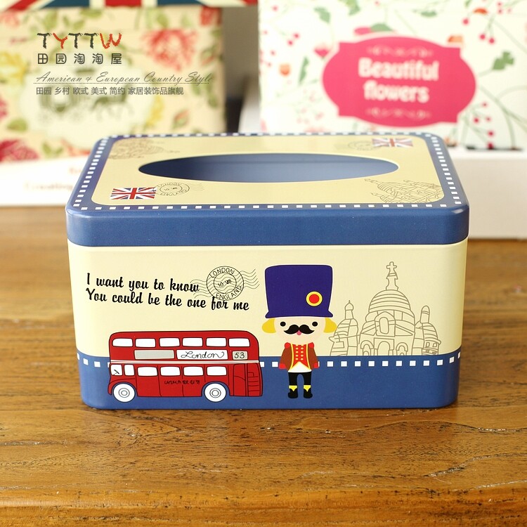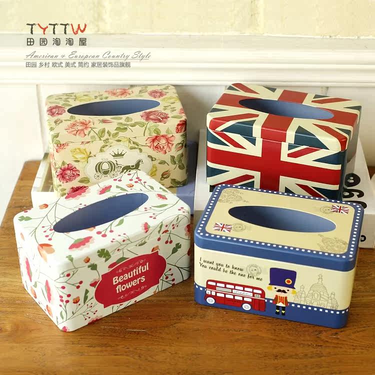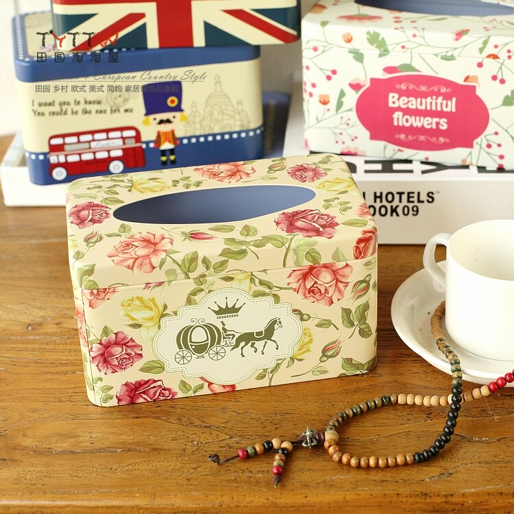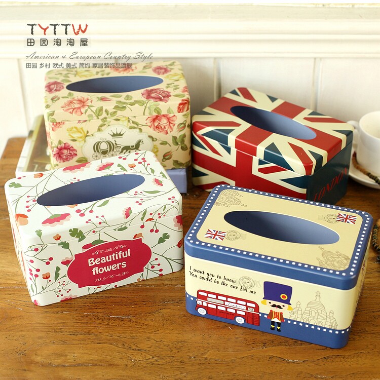 多色经典铁皮纸巾盒抽纸盒200抽款纸欧式家居收纳盒子装饰纸巾盒