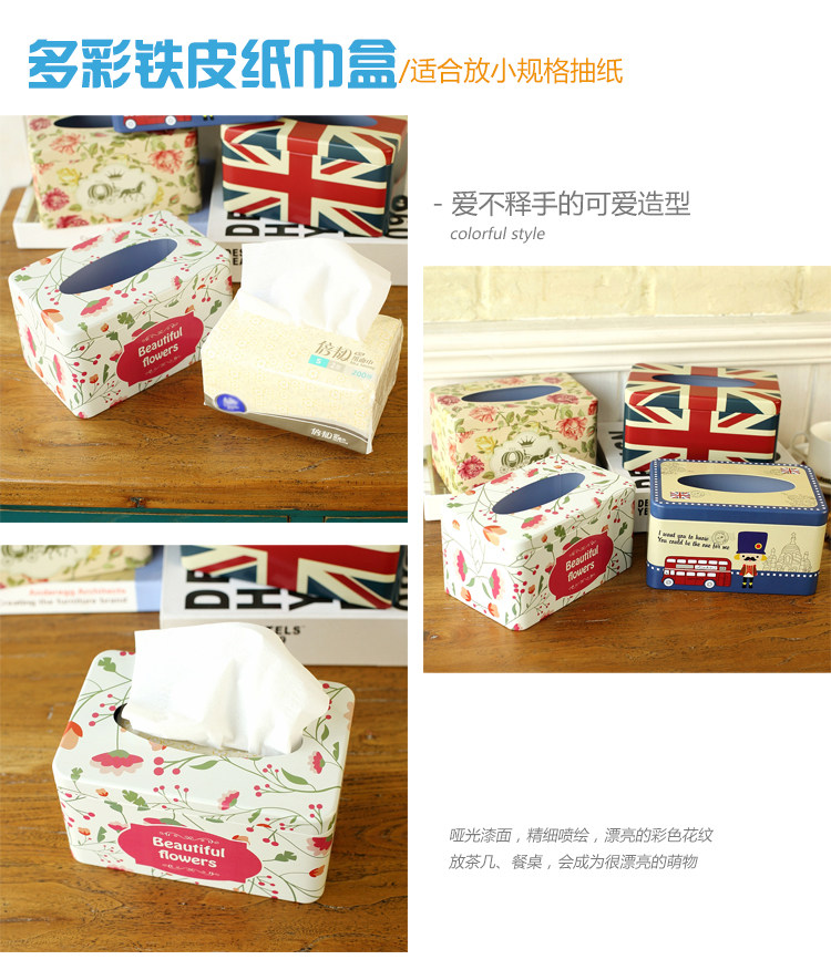 很漂亮的铁皮纸巾盒哦,铁皮工艺制作,经久耐用!客厅、房间、汽车等等都可使用