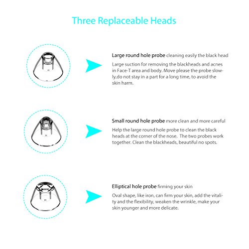 Provides 4 removable probes to meet different needs: easily clean up the blackhead and acne, remove dirt grease inside pores and tighten the skin.
