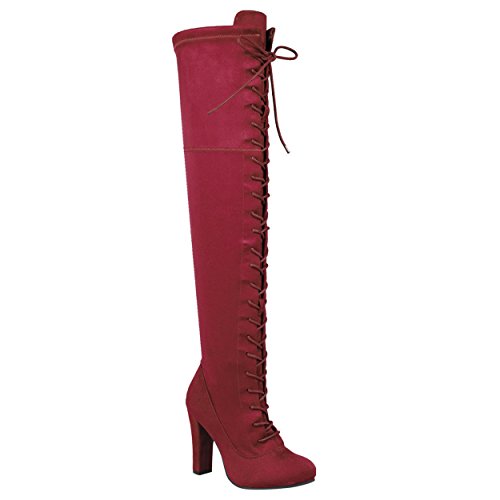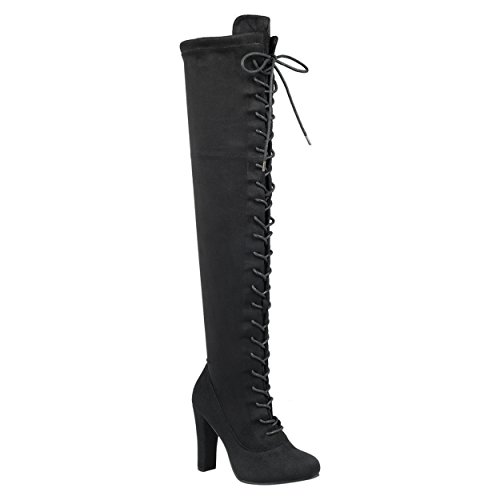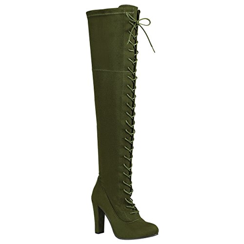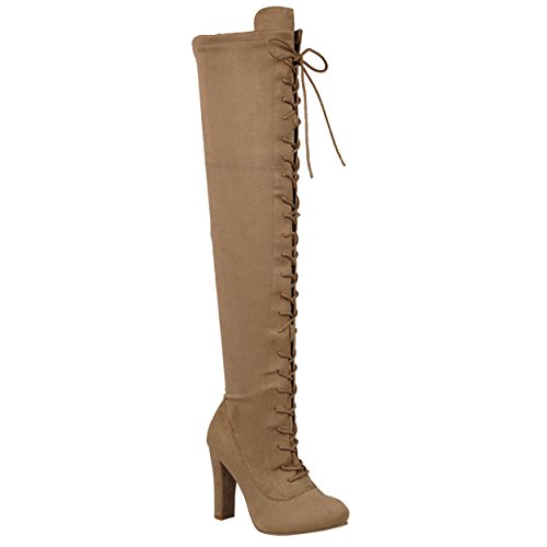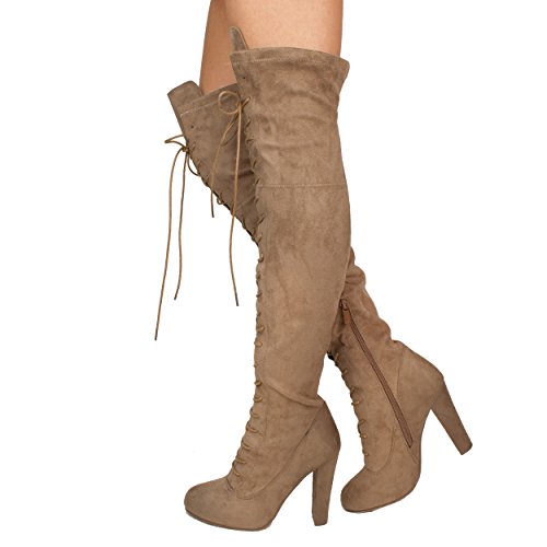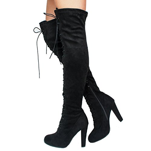 SNJ Women's Lace-up Long Comfy Suede Block Style Over The Knee High Chunky Heel Long Boots