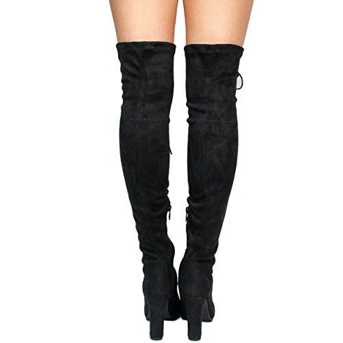 Product Description Women's Thigh High Over The Knee Pull Up Stretch Chunky High Heel Boots/Women's sueded thigh-high boot with peep toe front with open back heel and easy to wear and pull-on style. This fationable knee high boots featuring inner sole, side zipper closure, pull up, rear tie closure block high heel. 0