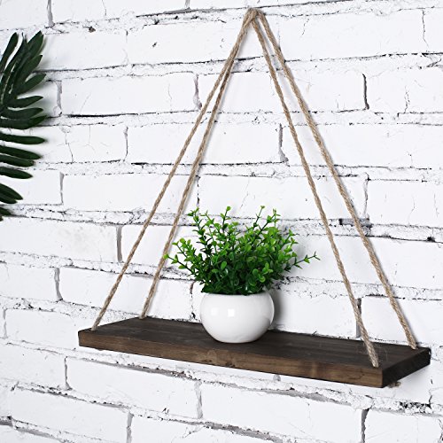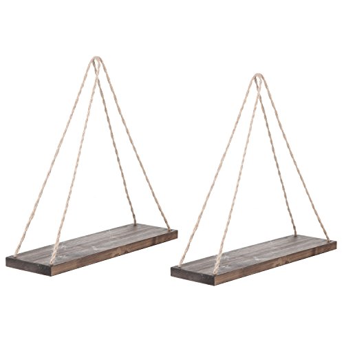 17-Inch Distressed Wood Hanging Swing Rope Floating Shelves, Set of 2, Brown