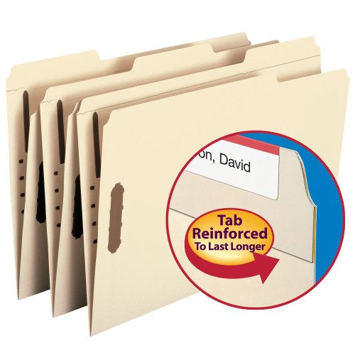 Smead 100% Recycled Fastener File Folder, 2 Fasteners, Reinforced 1/3-Cut Tab, Legal Size, Manila, 50 per Box (19547)