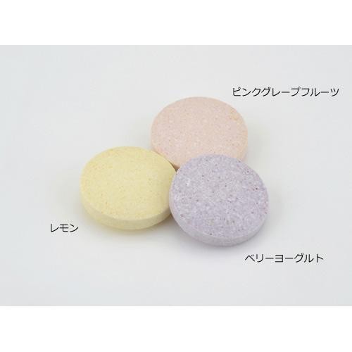 | 原材料 | 粉糖(砂糖、マルトデキストリン)、マルチトール、難消化性デキストリン、グレープフルーツ果汁粉末、粉末はっ酵乳、ブルーベリー果汁粉末、いちご果汁粉末、ビタミンE含有植物油、ミルクエキスパウダー、焼成カルシウム、V.C、セルロース、香料、ステアリン酸カルシウム、酸味料、ナイアシン、ピロリン酸鉄、パントテン酸カルシウム、V.A、甘味料(アスパルテーム・L-フェニルアラニン化合物、スクラロース)、着色料(クチナシ、ビートレッド、V.B2、トマトリコピン)、V.B12、糊料(プルラン)、V.B6、V.B1、V.D、葉酸 |