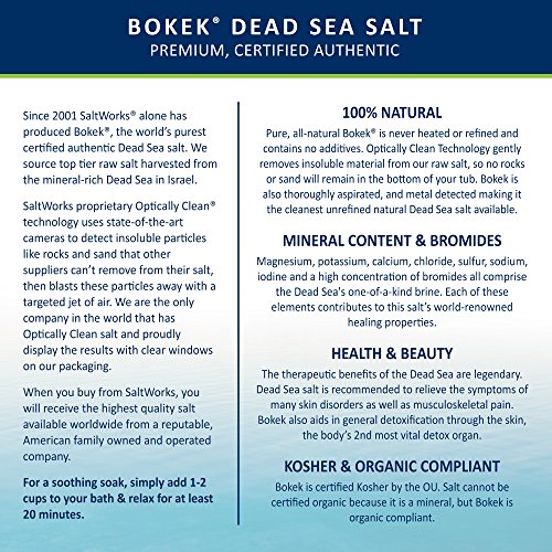OPTICALLY CLEANED with SaltWorks' proprietary air jet technology, this is the most pure certified authentic Dead Sea salt available on the market