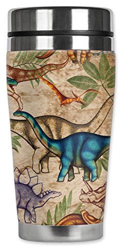 Mugzie 640-MAX "Jungle Dinosaurs" Stainless Steel Travel Mug with Insulated Wetsuit Cover, 20 oz, Black