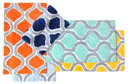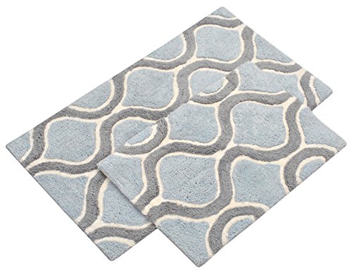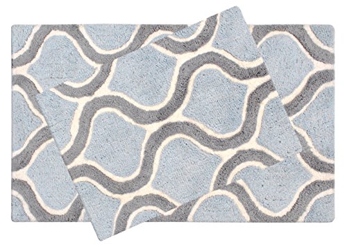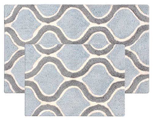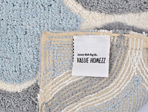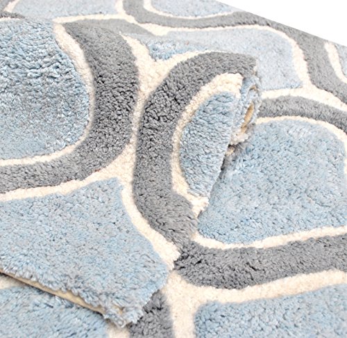 Value Homezz ( 2 piece bathroom rugs set ) Bath mat / Bath Rugs Size 17 x 24 / 21 x 34 Machine Washable Cotton Non Slip Wave Design Bathmat (Fresca Blue)